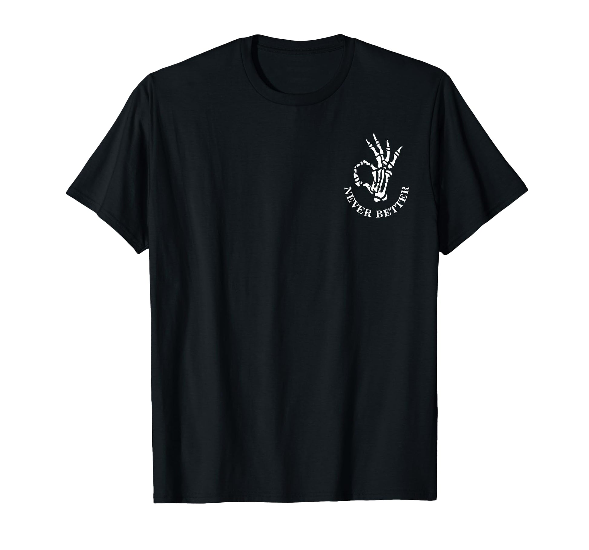 (2 Sided) Never Better Skeleton Messy Bun Drinking Coffee T-Shirt