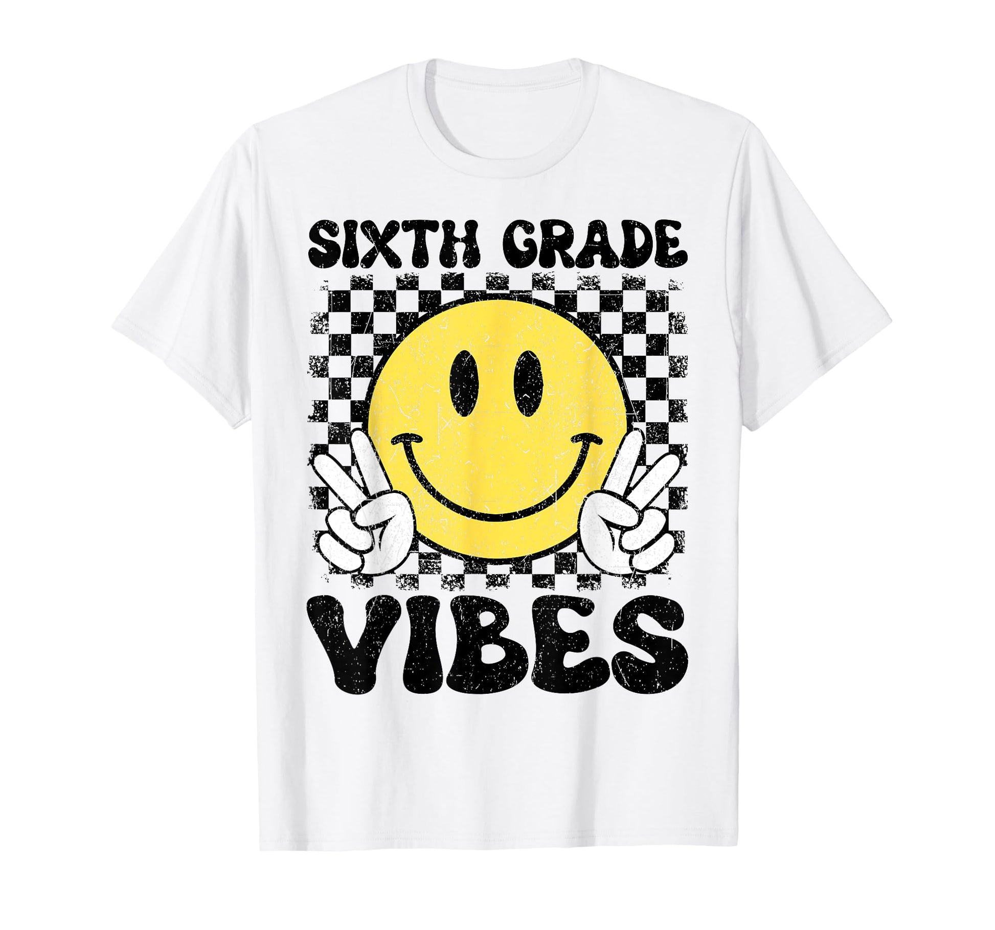 6th Sixth Grade Vibes Kids Boys Back To School Checkered T-Shirt