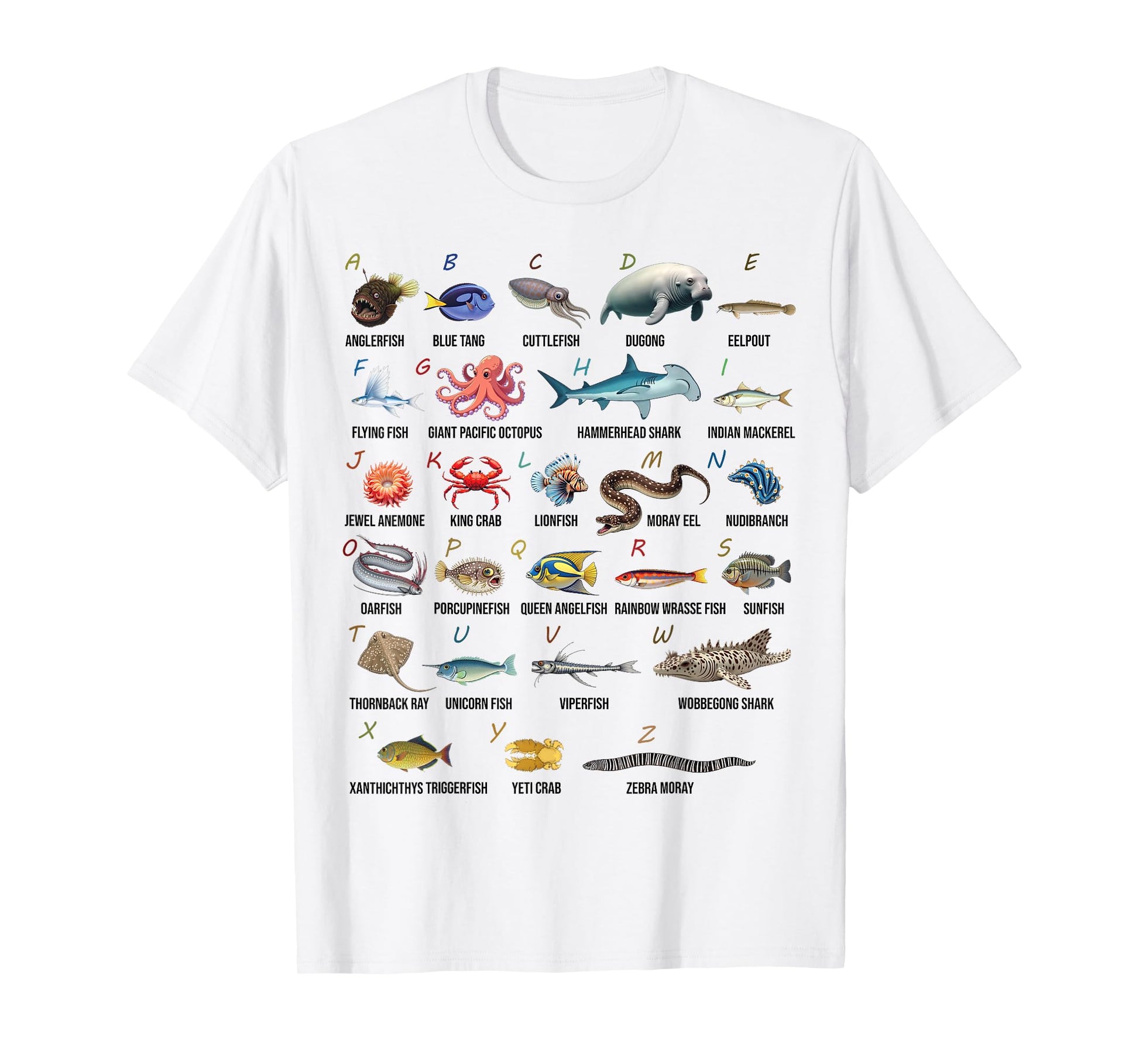 A-Z Ocean Life Alphabet Marine Creatures Exploration T-Shirt