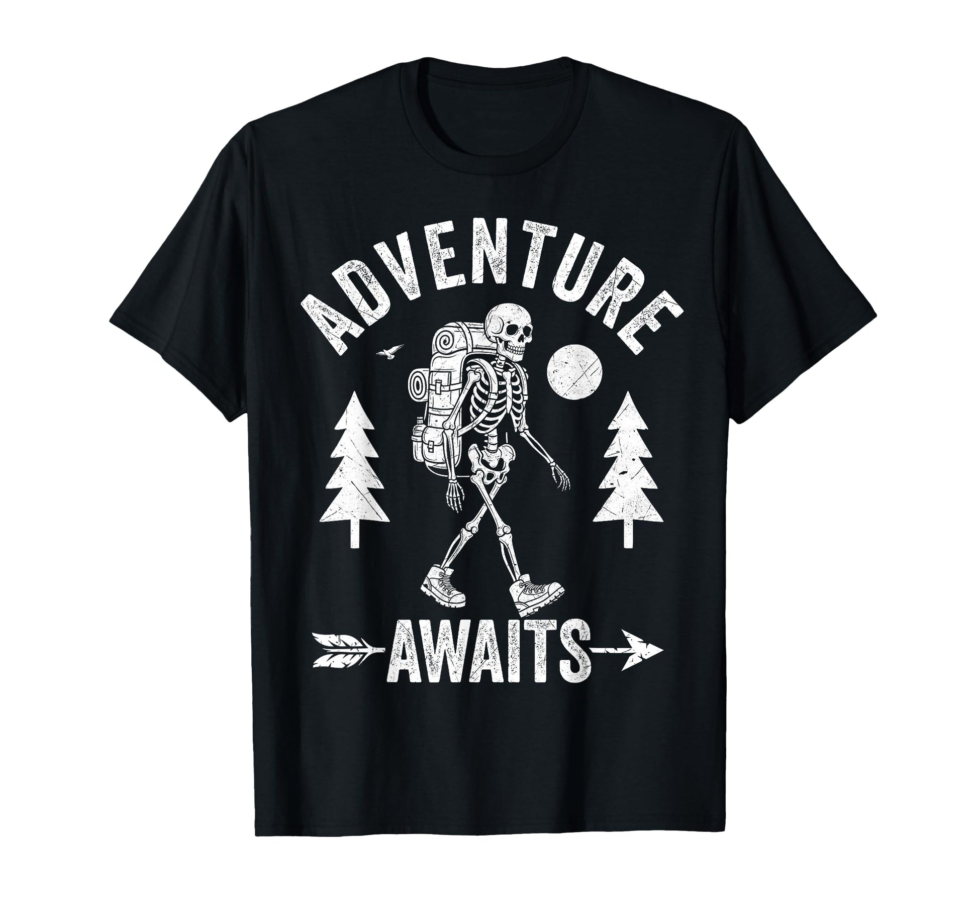 Adventure Awaits Skeleton Backpacker Spooky Halloween Hiking T-Shirt