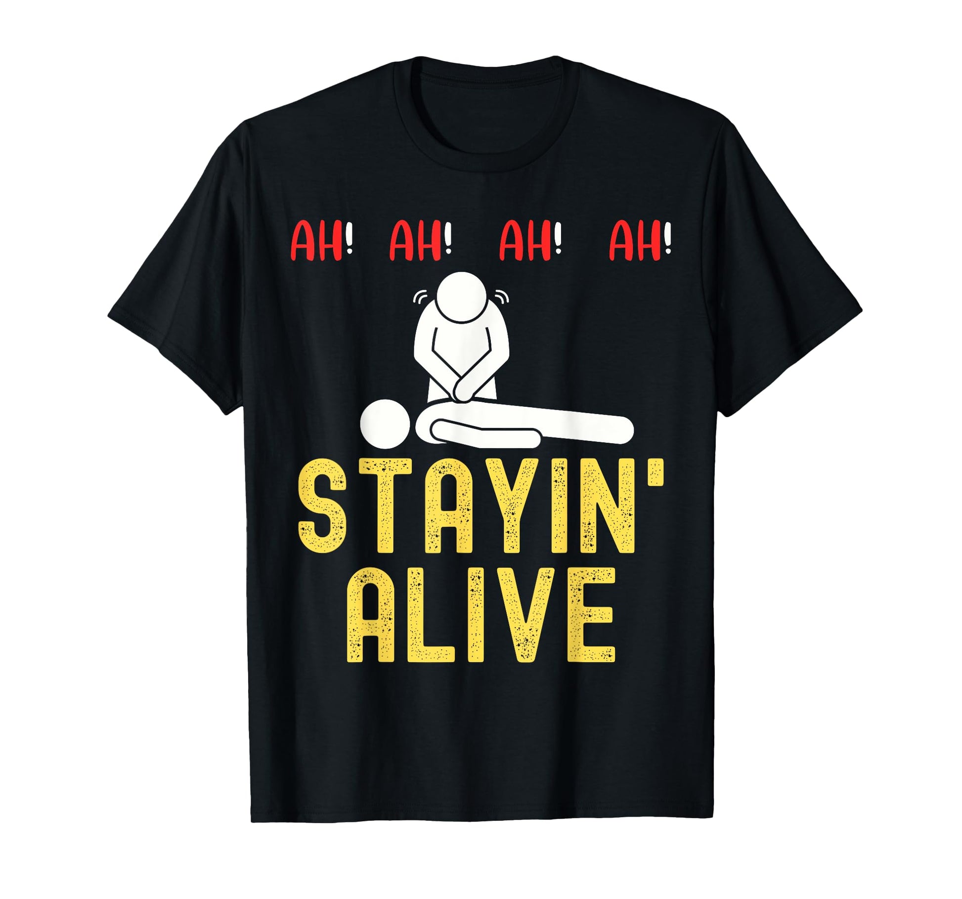 Ah Ah Ah Staying Alive Funny EMT Paramedic CPR RN ICU Nurse T-Shirt