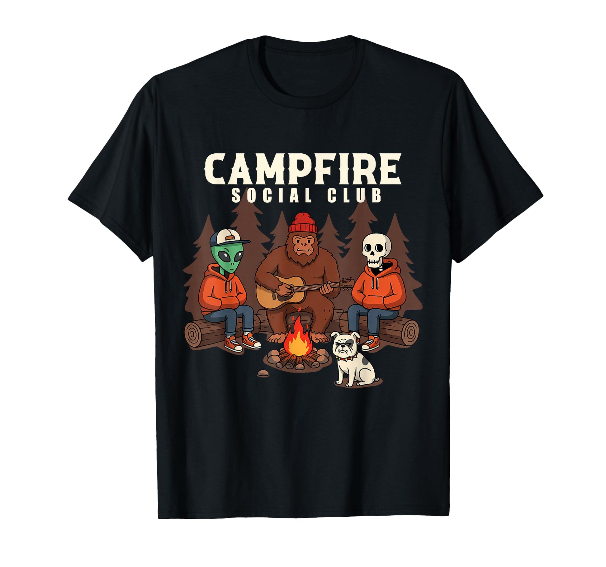 Alien Bigfoot Skeleton Funny Campfire Social Club Mens Boys T-Shirt