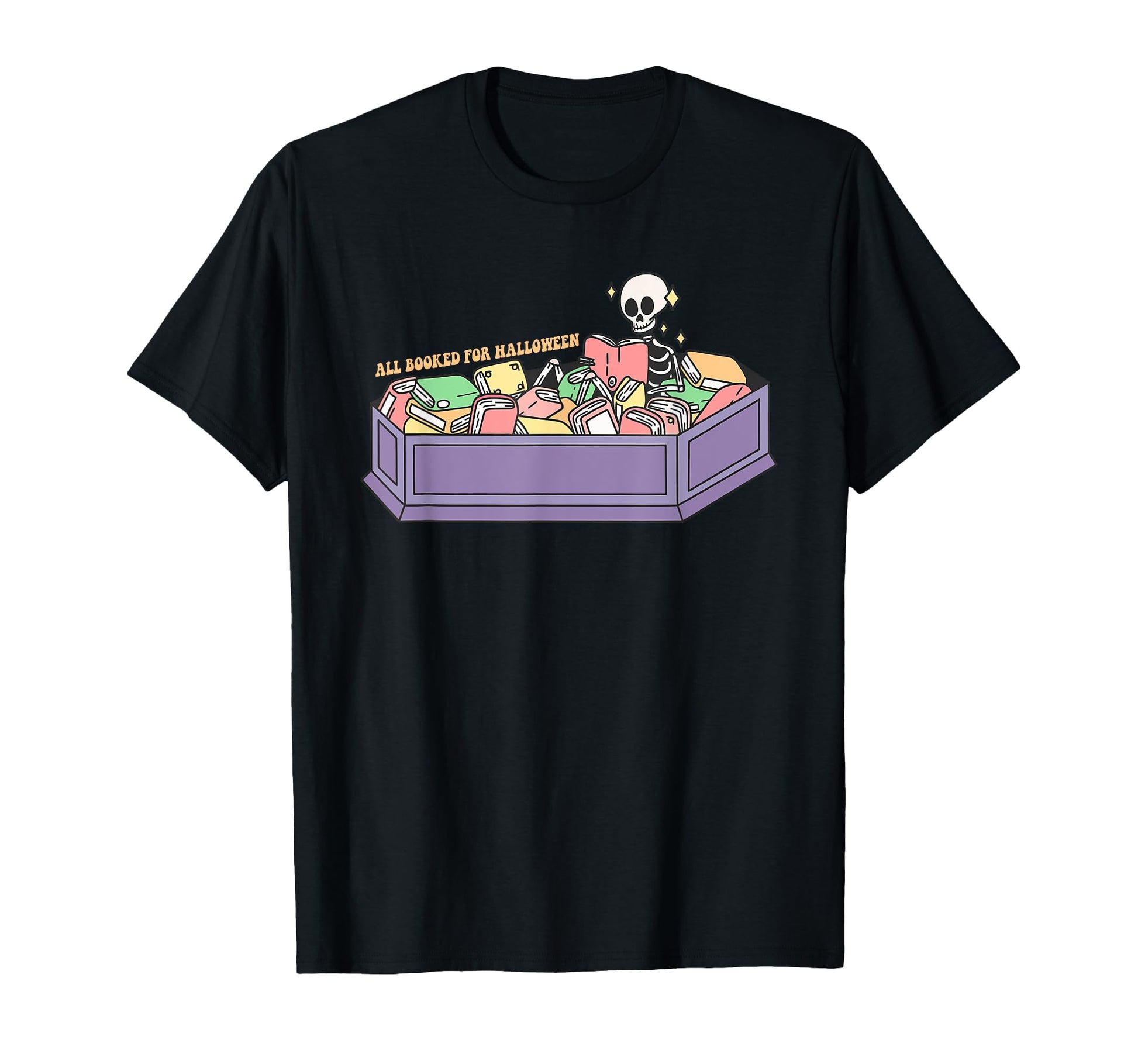 All Booked for Halloween Ghost Reading A Book Skeleton T-Shirt