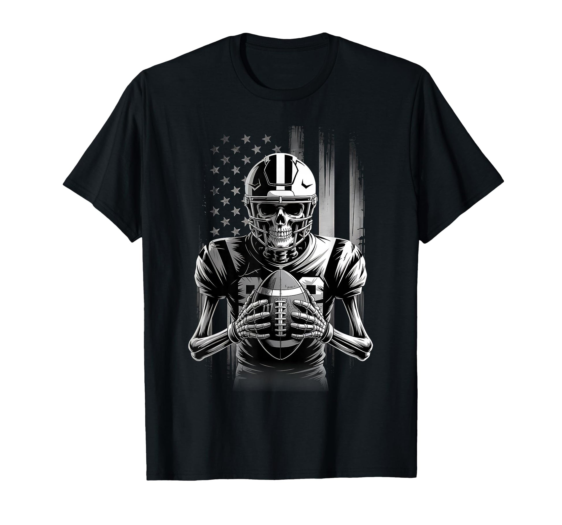 American Football Skeleton USA Flag Halloween Men Teens Boys T-Shirt