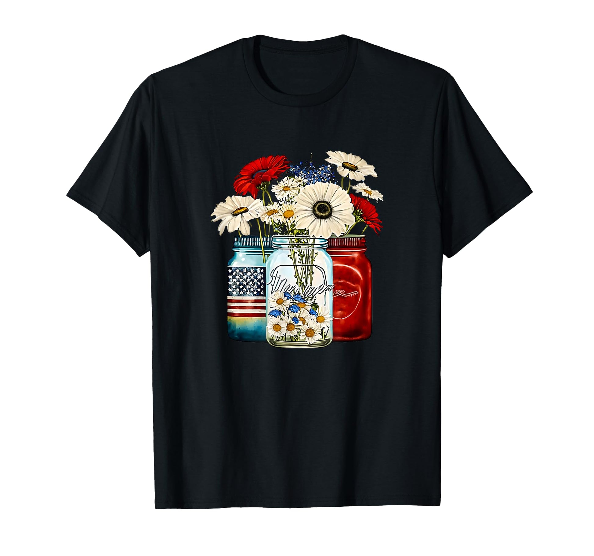American Patriotic USA Flag Jars with Daisy 4th Of July T-Shirt for Women Men
