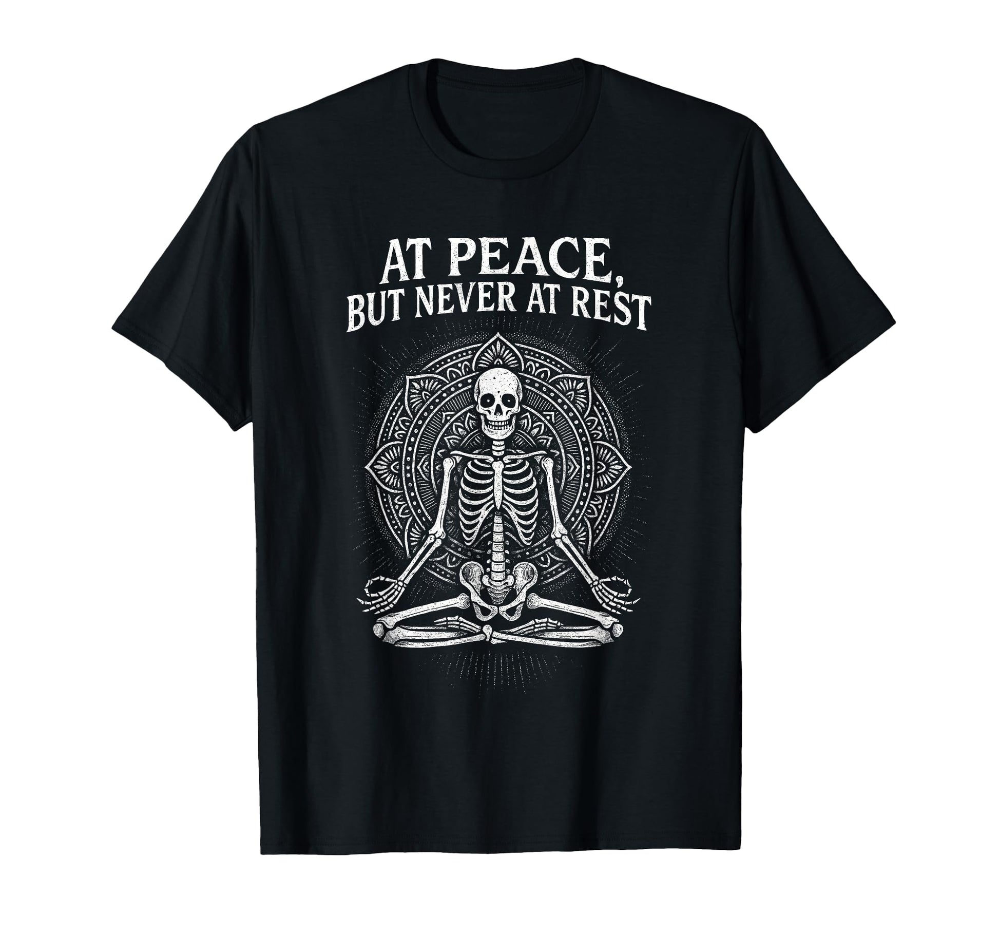 at Peace But Never at Rest Skeleton with Yoga Position T-Shirt