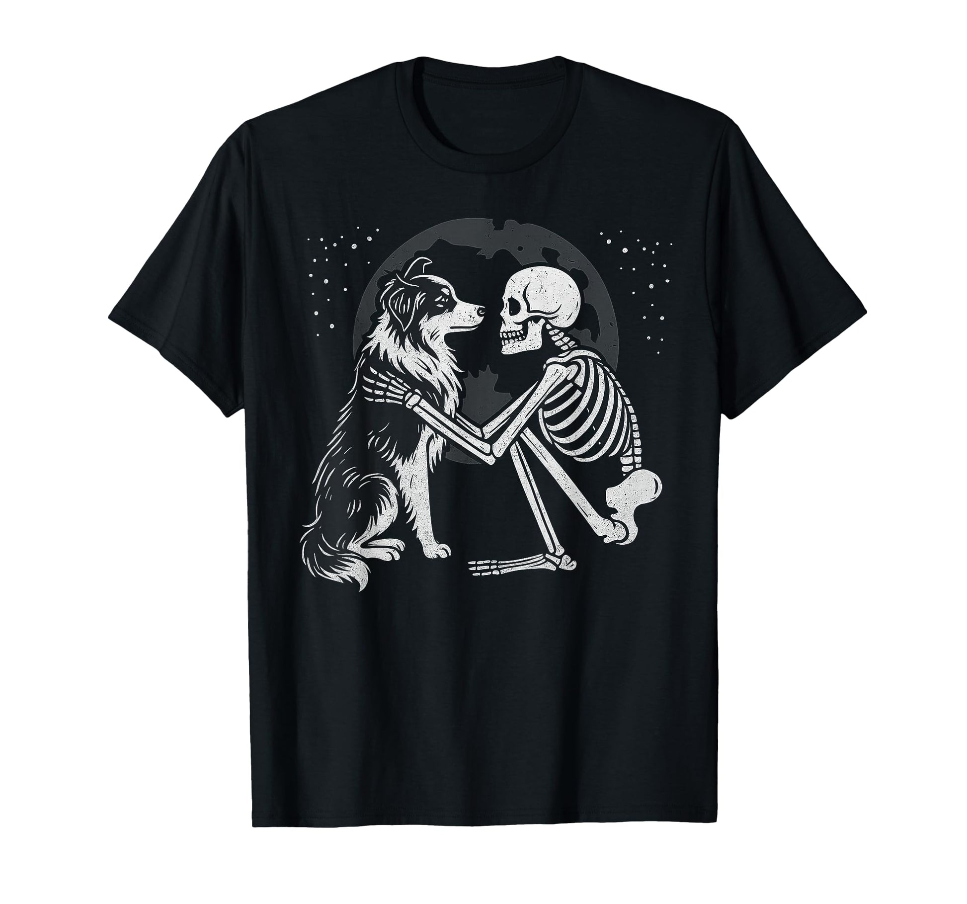 Australian Shepherd Skeleton Moon Halloween Dog Lover T-Shirt