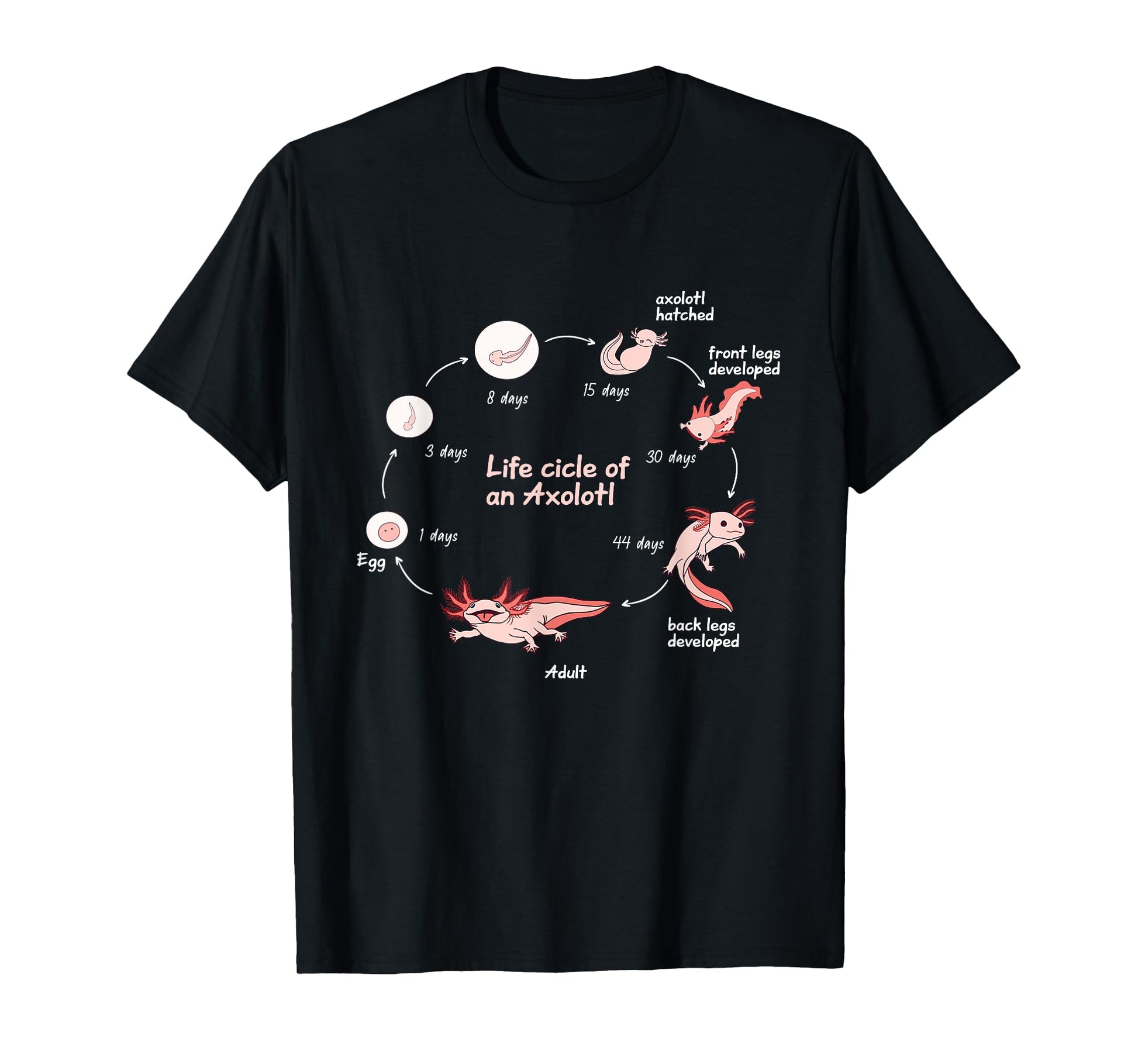 Axolotl Lifecycle Chart Cute Kawaii Salamander Amphibian T-Shirt