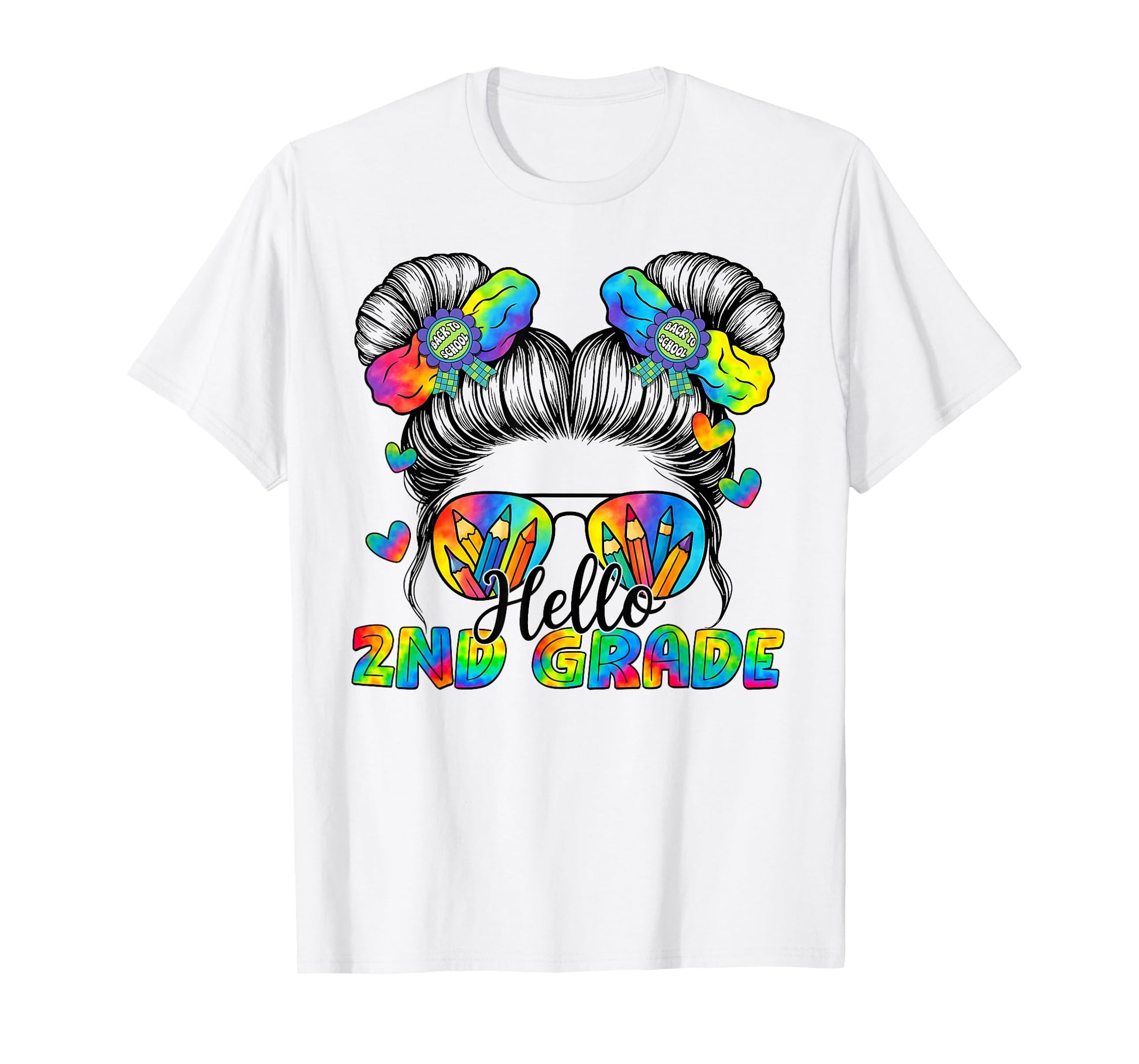 Back To School Tie Dye Hello 2nd Grade Messy Bun Girl T-Shirt