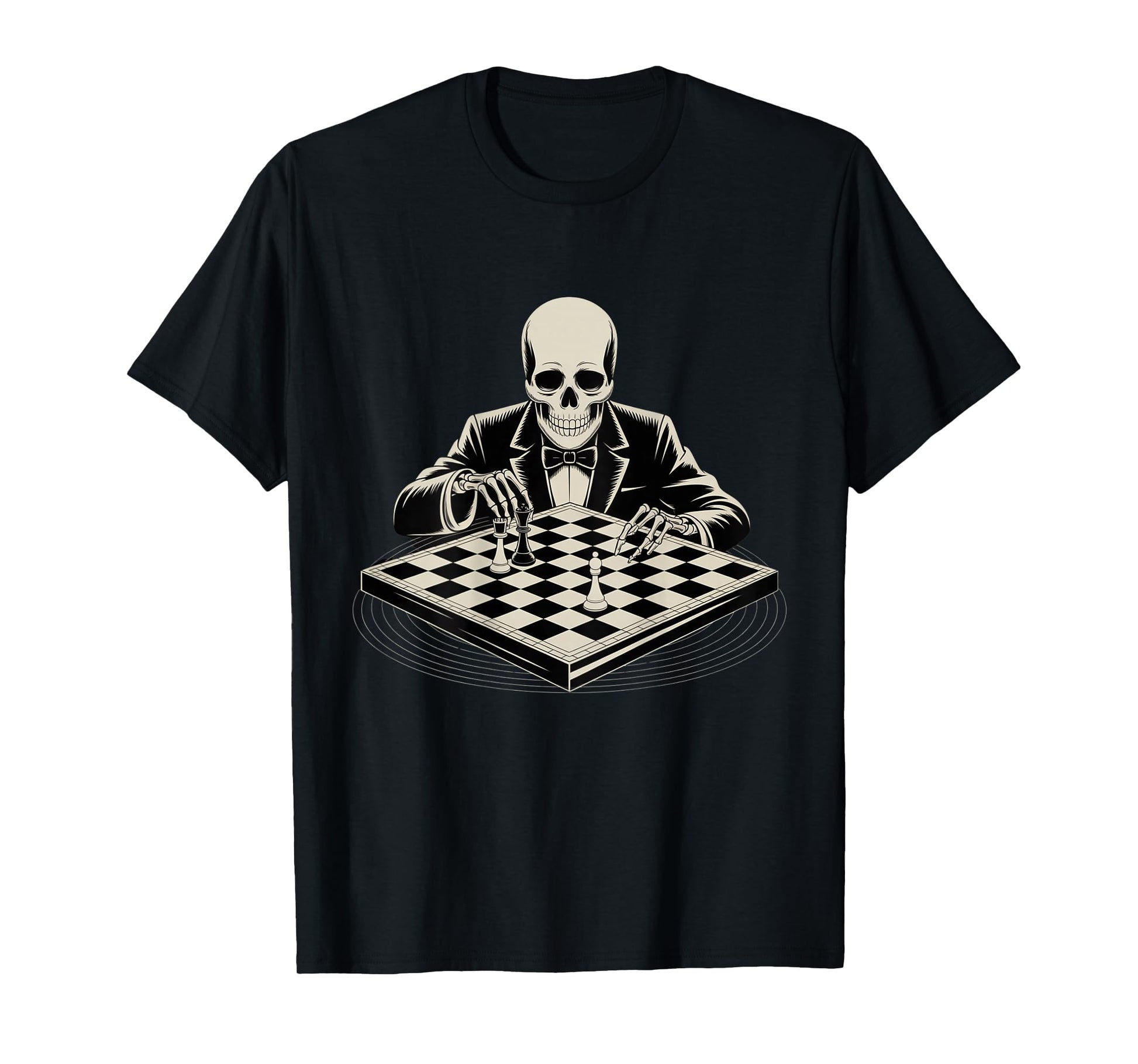 Backprint Skeleton Playing Chess Cool Skull Funny Skeleton T-Shirt