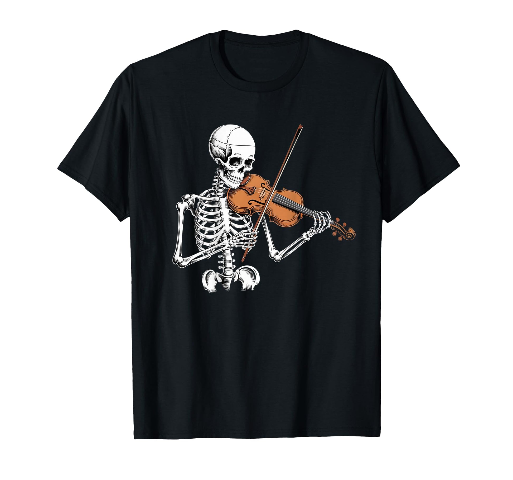 Backprinted Skeleton Playing Violin Music Funny Skeleton T-Shirt