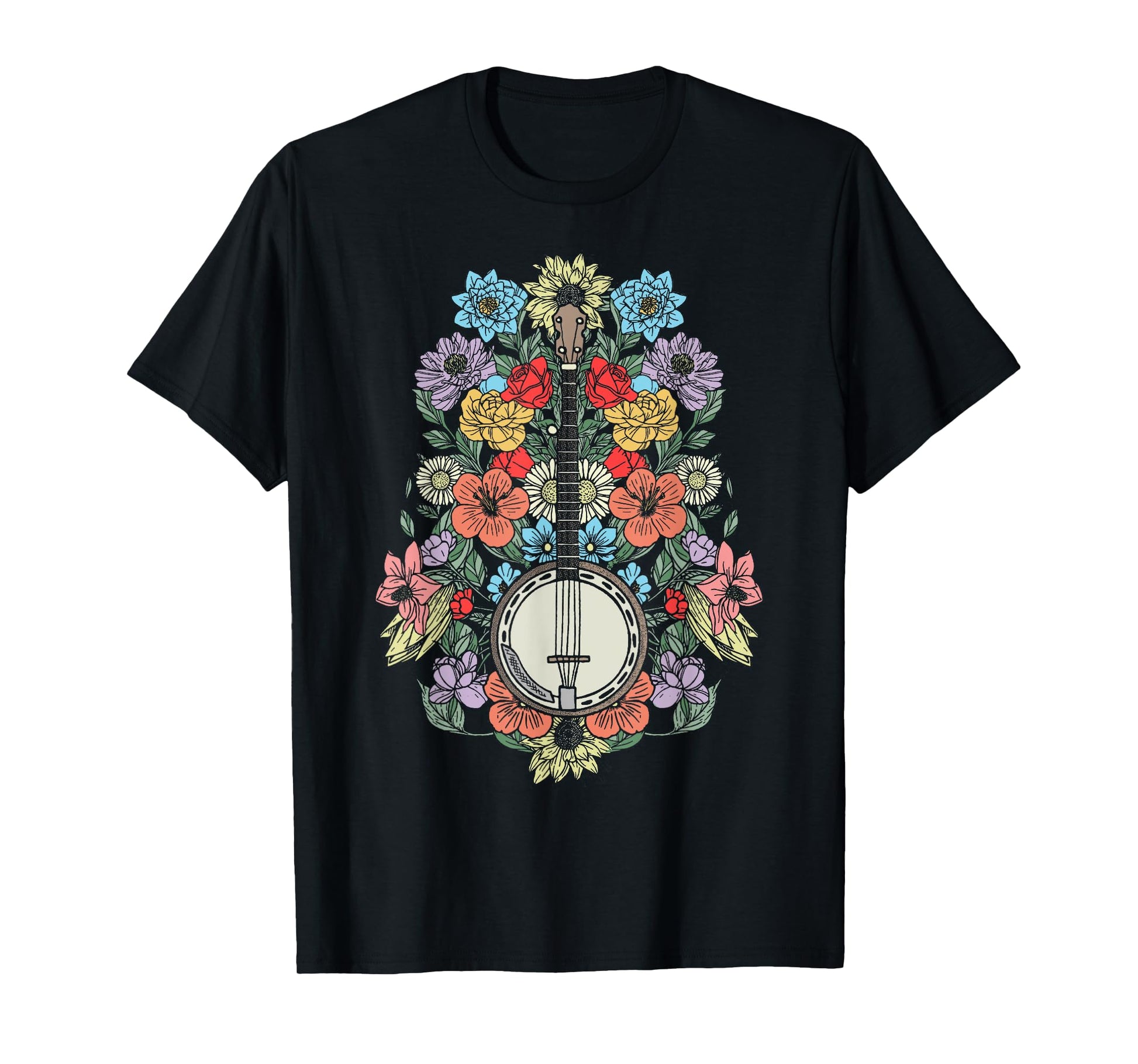 Banjo Flowers Vintage Stringed Bluegrass Folk Floral Design T-Shirt