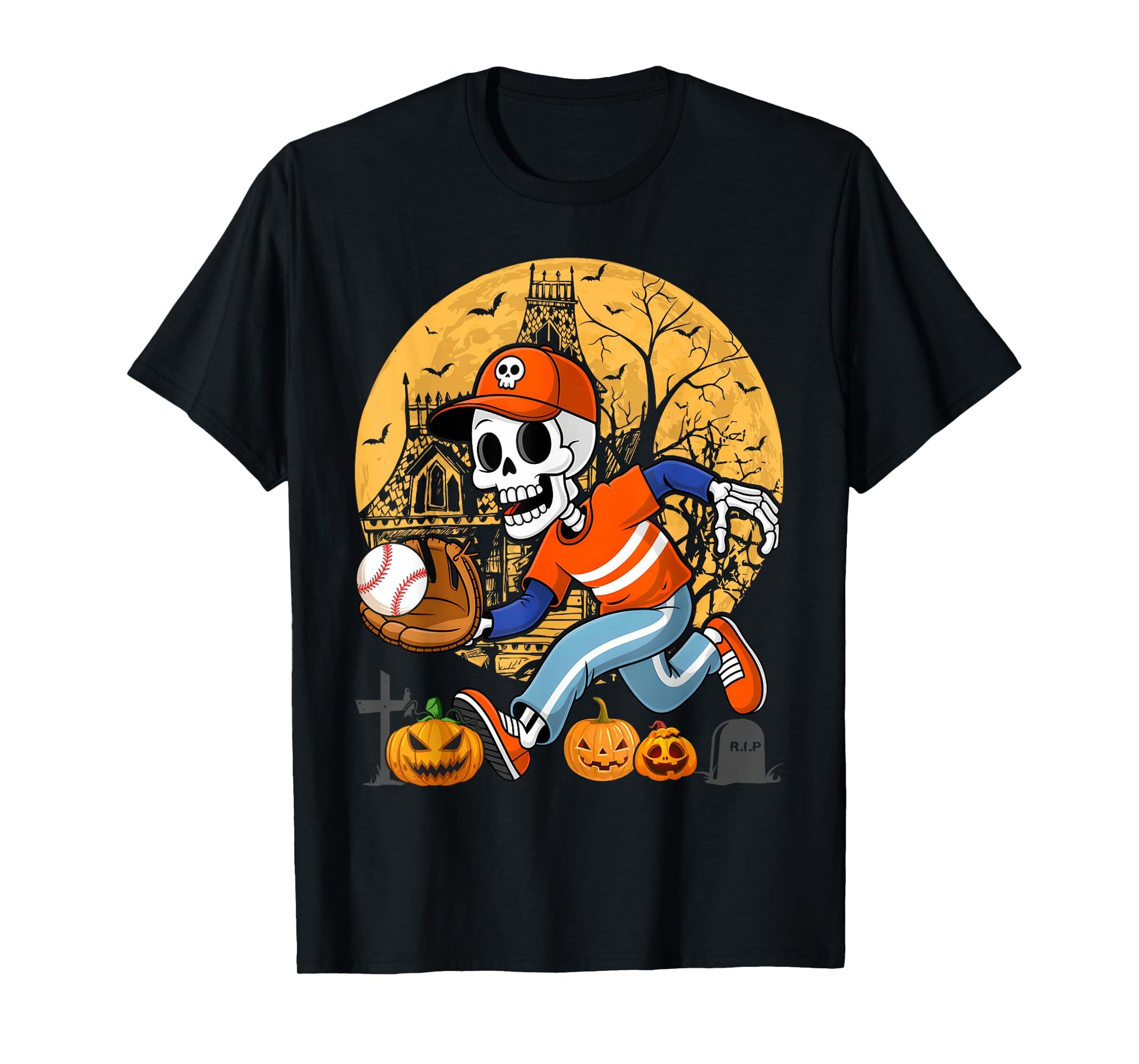 Baseball Halloween Boys Men Skeleton T-Shirt