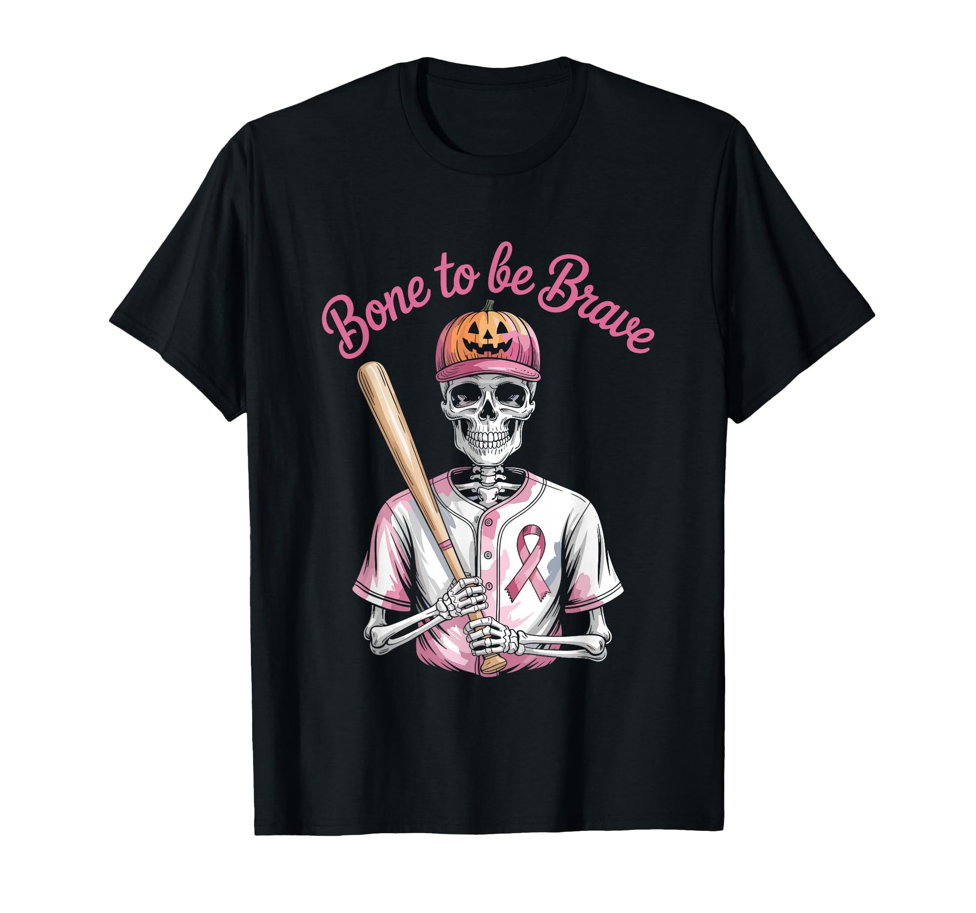 Baseball Skeleton Fighter Halloween Breast Cancer Awareness T-Shirt