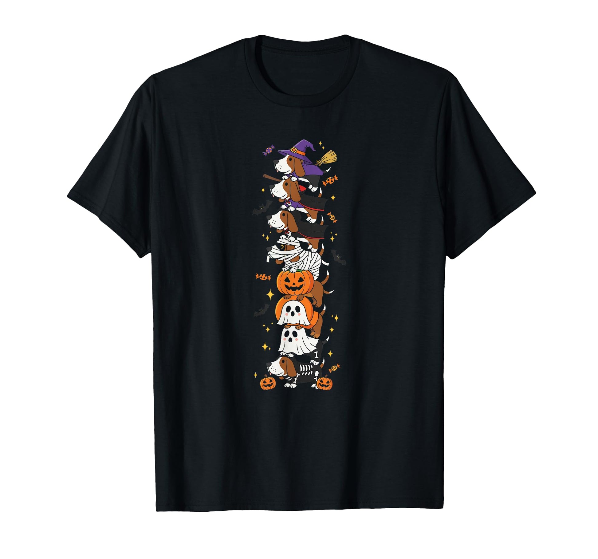 Basset Hound Witch Vampire Ghost Halloween Kids Mens Womens T-Shirt
