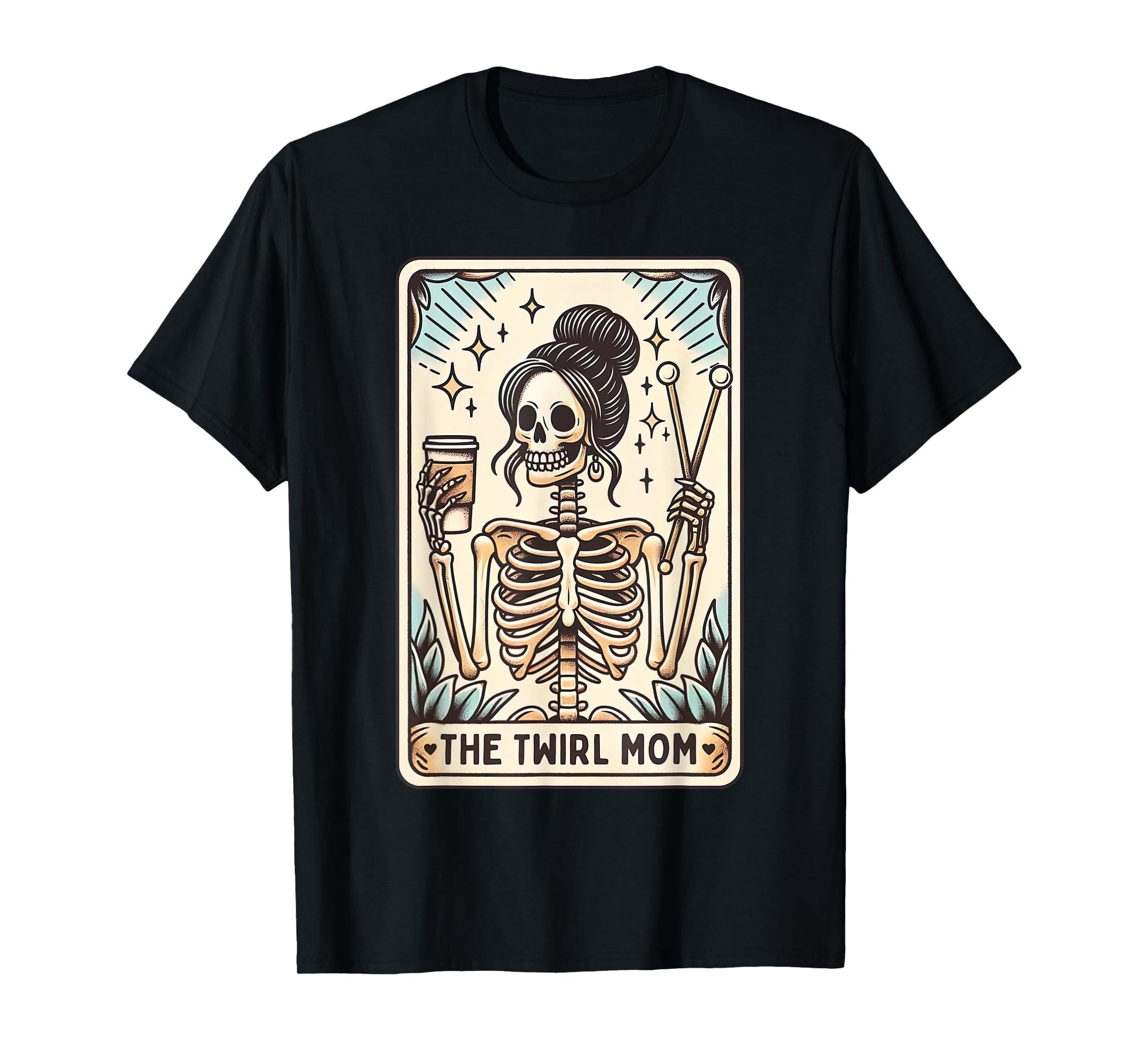 Baton Twirler Mom Tarot Card Halloween Skeleton Twirling T-Shirt