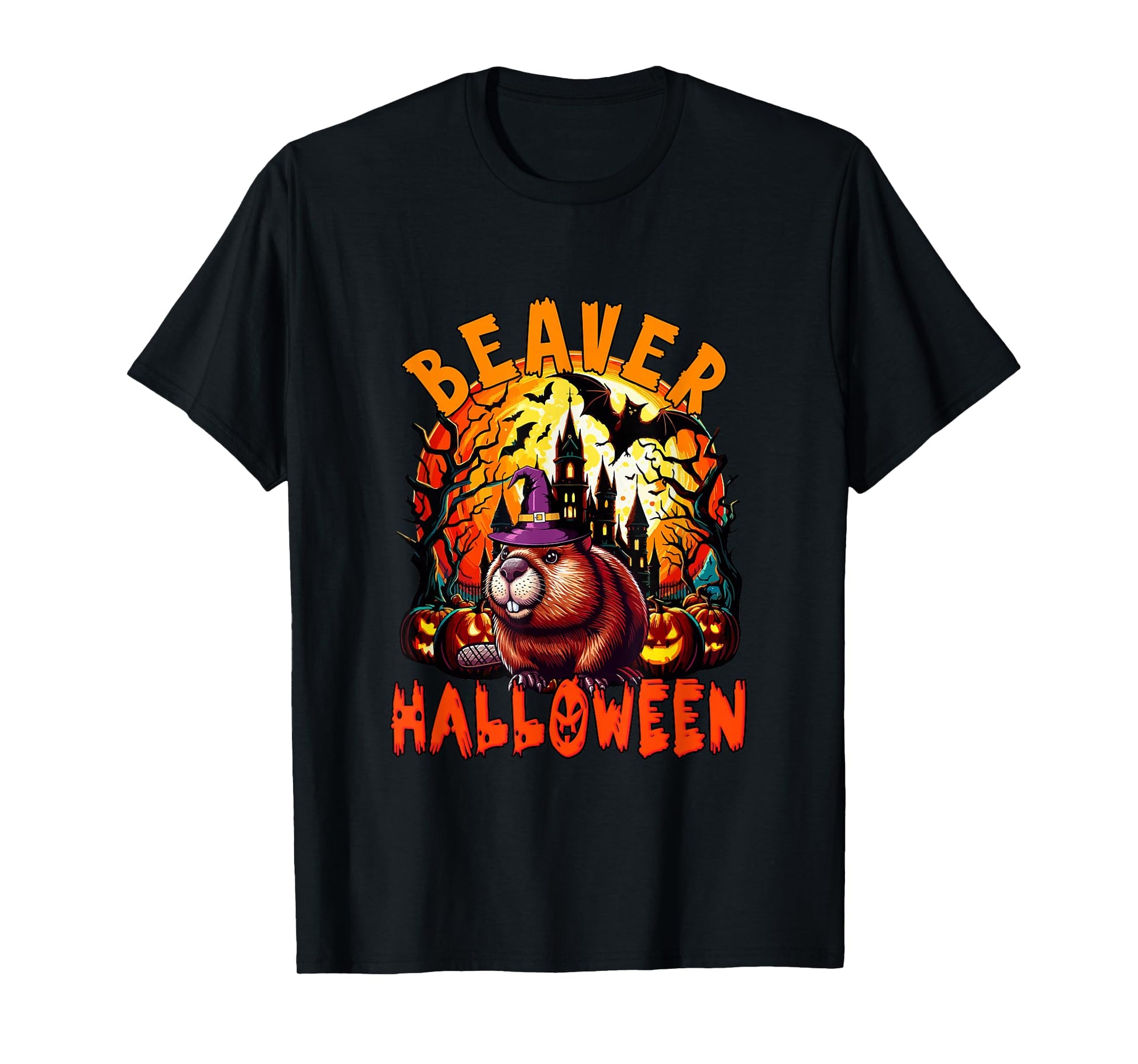 Beaver Halloween Cosplay Witch Horror Carved Pumpkins T-Shirt