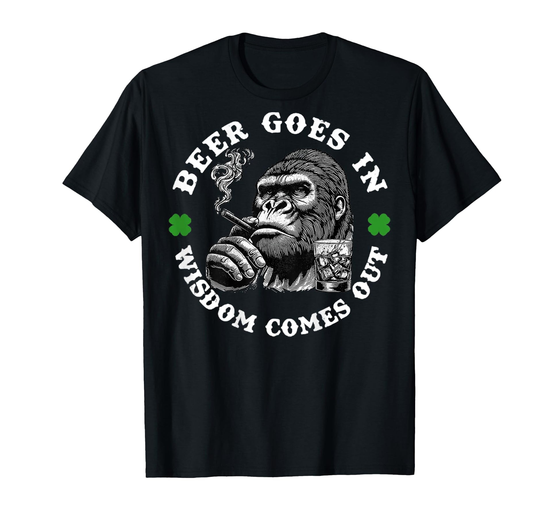 Beer Goes in Wisdom Comes Out Monkey (On Back) T-Shirt