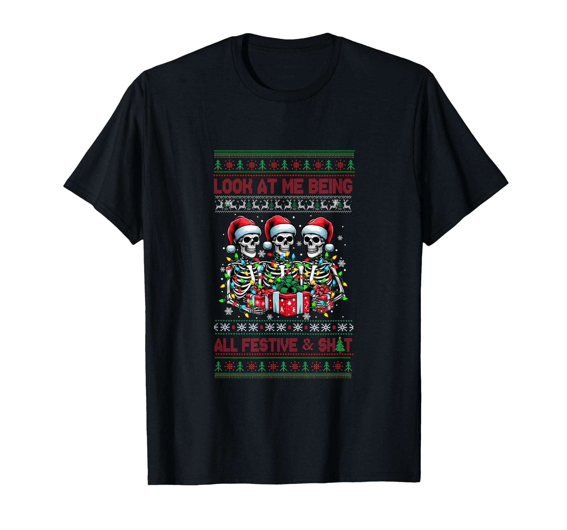 Being All Festive Xmas Sweater Bad Felling Santa Skeletons T-Shirt