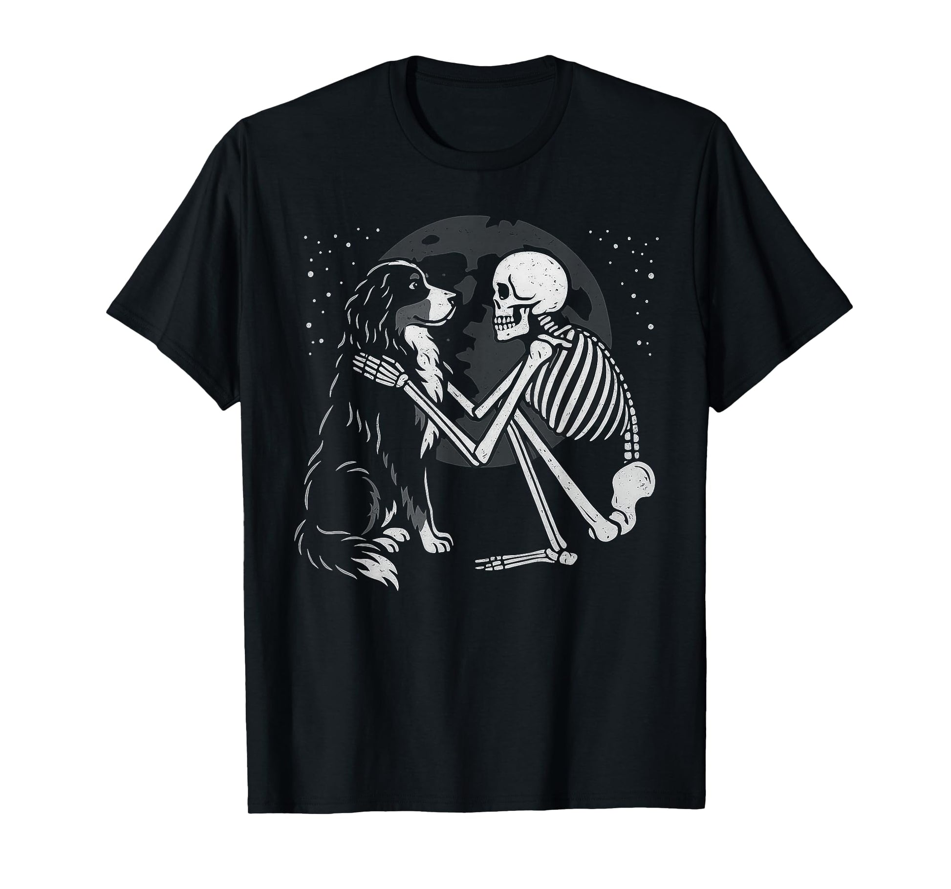 Bernese Mountain Dog Skeleton Moon Halloween Dog Lover T-Shirt